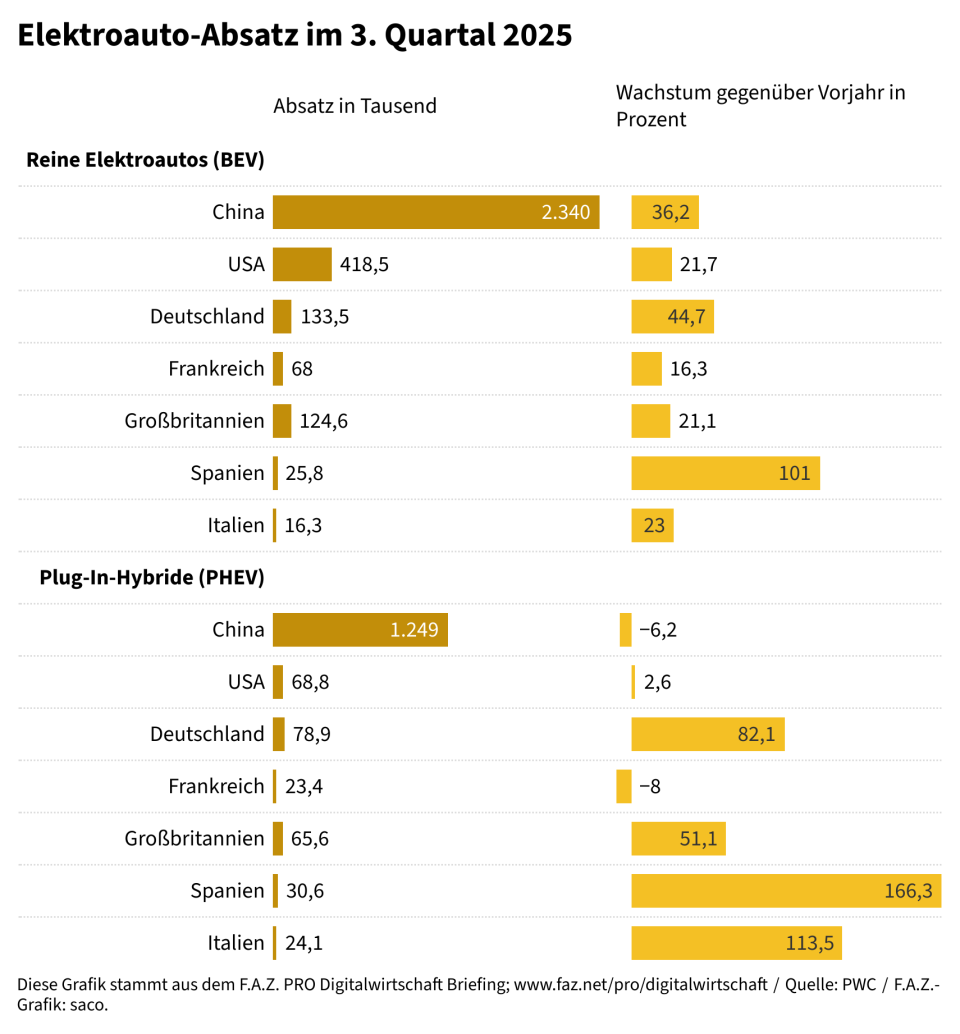 Der weltweite Elektroautomarkt hat im dritten Quartal neue Höchststände erreicht. In China schnellen die Verkaufszahlen dank des erbitterten Preiskampfes auf Rekordniveau, während in den USA ein Endspurt einsetzt, bevor eine wichtige Kaufprämie auslief.