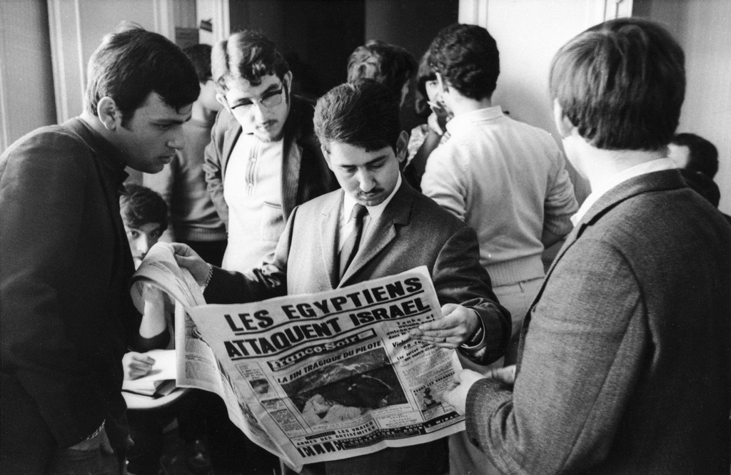 Eine Zeitung verkündet am 6. Juni 1967 mit der Schlagzeile „Die Ägypter greifen Israel an" die Kriegserklärung im Sechstagekrieg. dpa