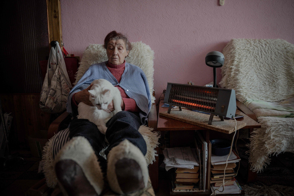 Diese 75 Jahre alte Frau aus Kiew und ihre Katze müssen frieren: Russlands Krieg in der Ukraine trifft in diesem Winter vor allem die Energieinfrastruktur.AFP