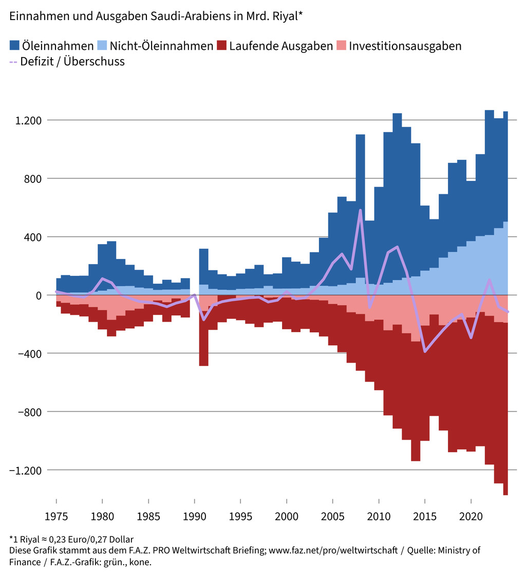 Diese Sorge Riads möchten andere Länder gern haben: Im neuen Jahr könnte die Staatsverschuldung Saudi-Arabiens erstmals auf mehr als 30 Prozent des Bruttoinlandsprodukts steigen – vor 15 Jahren waren es immerhin nur 10 Prozent. Damit muss sich der monarchische Herrscher Muhammad Bin Salman (MBS) dieses Jahr die Frage stellen, wie viel seiner ambitionierten Strategie „Vision 2030“, mit der er die Volkswirtschaft weniger abhängig von Öl machen will, er noch durchdrücken kann – und ob dies tatsächlich eine steigende Staatsverschuldung wert ist. Denn derzeit liegt der Ölpreis mit knapp über 60 Dollar je Barrel (159 Liter) fast ein Drittel unter dem Betrag, der für einen ausgeglichenen Staatshaushalt der Ölnation nötig wäre. Vor allem aber wurden für einige der wichtigsten