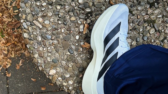 Technik für Tempo. Der Adizero Evo SL wiegt nur 167 Gramm und setzt auf pure Geschwindigkeit. Ein Laufschuh für alle, die nicht nur laufen wollen – sondern fliegen.